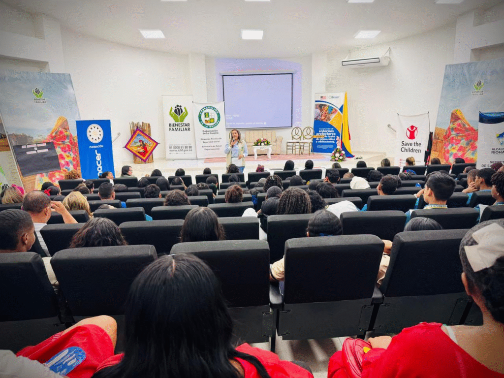 Con un contundente llamado a romper los tabúes en torno a la educación sexual, la adolescente Jonaithy Llorente, de 14 años, instó a madres y padres a orientar abiertamente a sus hijos sobre los métodos anticonceptivos. Su intervención se dio en el marco del foro «Fortaleciendo proyectos de vida y entornos seguros para niñas, niños, adolescentes y jóvenes de La Guajira», realizado por Bienestar Familiar en conmemoración de la Semana Andina de la Prevención del Embarazo en la Adolescencia y el Día Internacional de la Lucha contra la Explotación Sexual Comercial de Niñas, Niños y Adolescentes.
