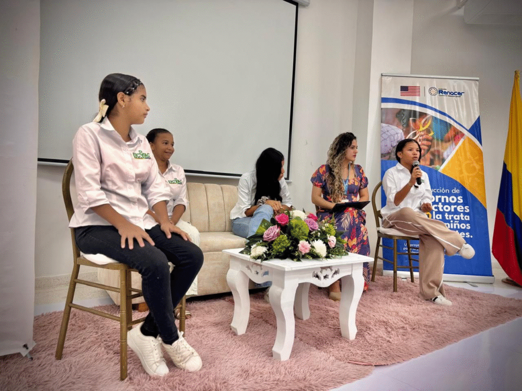 En un segundo momento del evento, lideresas comunitarias como Rosandry González, Daniela Sáenz, Leonela Bouriyú y Lianeth Castellano compartieron sus experiencias sobre la construcción de redes de protección comunitaria en La Guajira. Las panelistas reflexionaron sobre los factores de riesgo latentes en los territorios, especialmente aquellos que propician la explotación sexual comercial de niñas, niños y adolescentes.