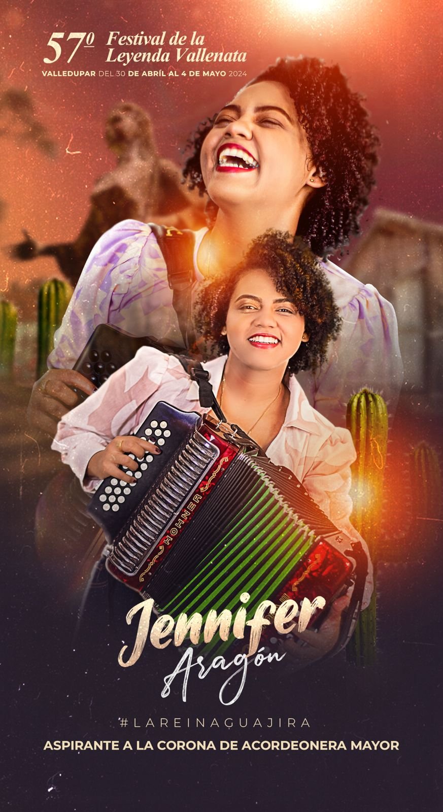 En el municipio de Albania, en La Guajira, nace Jennifer Mercedes Aragón García, el 21 de diciembre de 1993, quien estaba destinada a dejar una marca imborrable en el mundo de la música vallenata. Psicóloga de profesión y actualmente especializándose en gestión de proyectos culturales, Jennifer ha sabido fusionar su carrera profesional con su pasión inquebrantable por la música, específicamente el acordeón, instrumento que ha dominado con maestría desde su infancia.