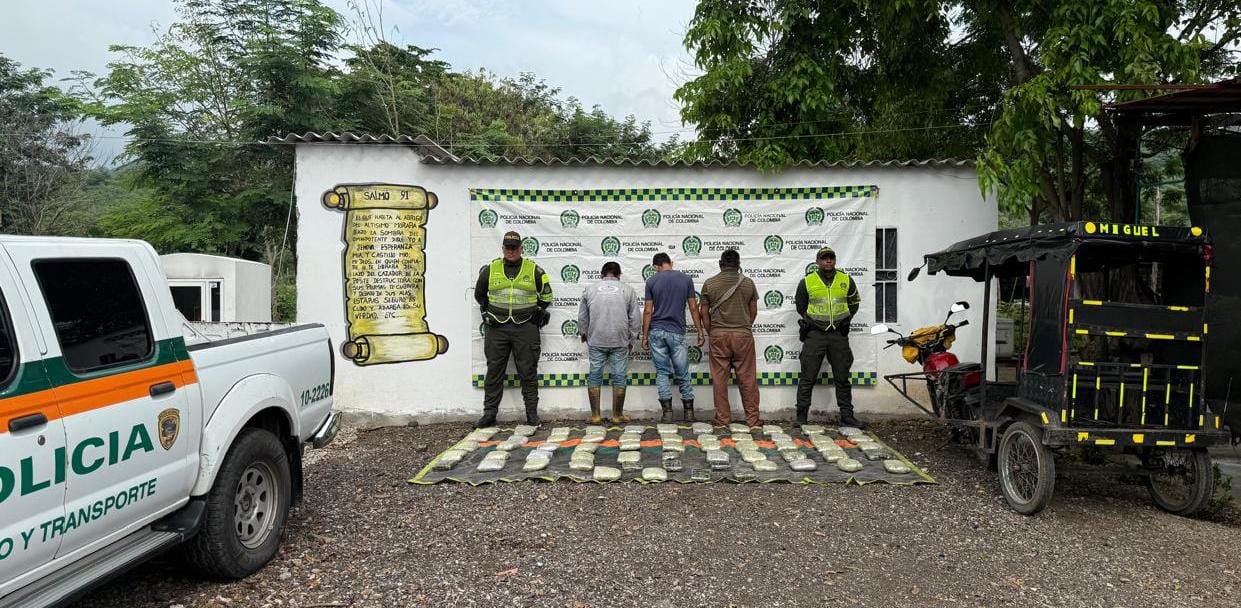 Tres hombres fueron arrestados mientras se movilizaban por las vías del sur de La Guajira, transportando 29,5 kilogramos de marihuana. La captura fue realizada por personal de la Seccional de Tránsito y Transporte (Setra) de la Policía Nacional, durante labores de vigilancia.