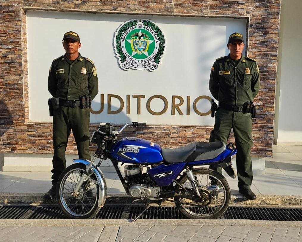 La Policía Nacional también reportó que, a la entrada de Albania, hallaron un rodante, marca Suzuki, placa ZOH 58A, color azul; requerida por parte de la Unidad de Intervención Temprana en Riohacha.