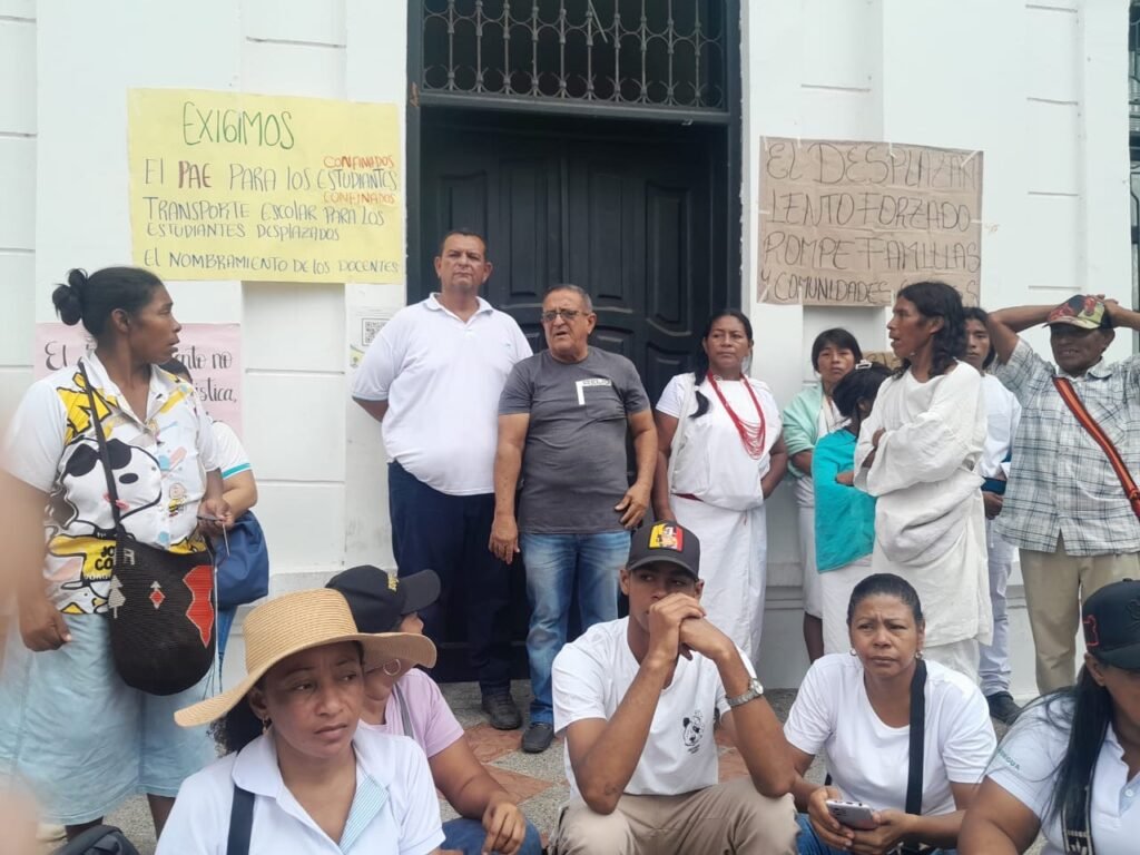 Los manifestantes también reclaman atención para las personas que han sido desplazadas de sus hogares por la violencia y que actualmente se encuentran alojadas en casas de familiares en Riohacha.