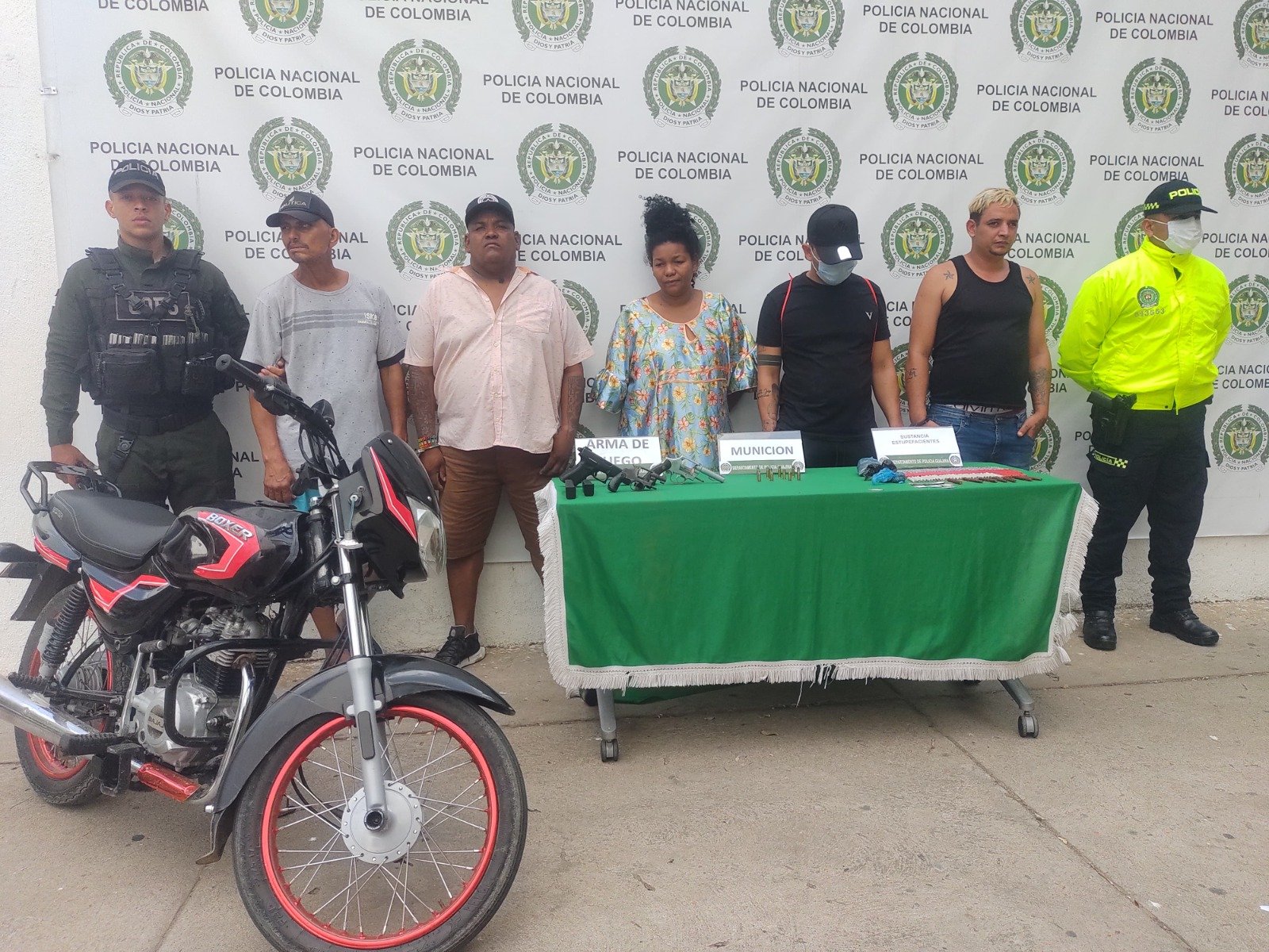 Los aprehendidos y elementos incautados fueron dejados a disposición de la autoridad judicial competente por los delitos de porte ilegal de armas de fuego y tráfico de estupefacientes.