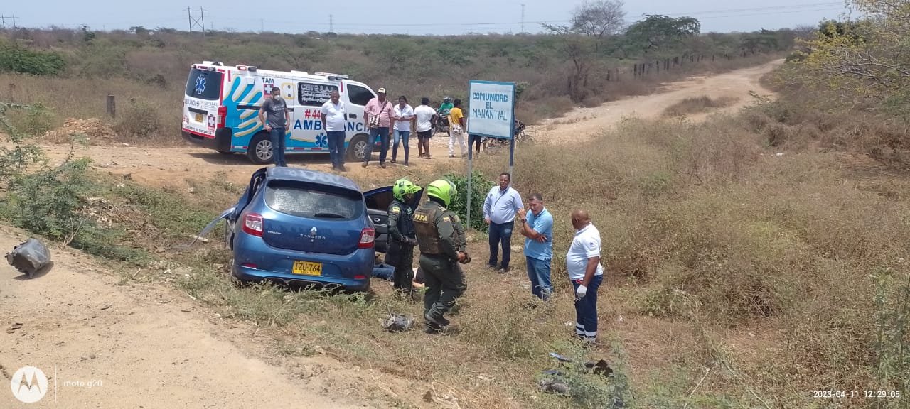 Este siniestro vial sucedió alrededor del mediodía de ayer martes 11 de abril, a la altura del kilómetro 1 más 500 metros, de la carretera departamental que comunica al sur de La Guajira con la capital del departamento.