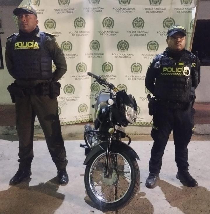 También indicaron que la ubicaron en la calle 4 entre las carreras 16 y 17, barrio Loma Fresca, los uniformados al llegar buscaban el rodante Bajaj, línea CT 100, color negro con verde, placa YRF 15F.