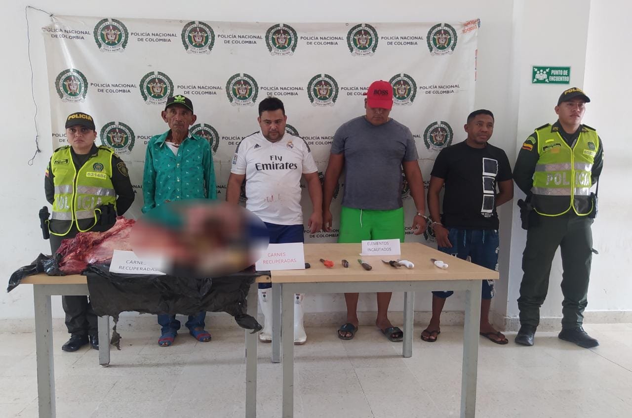 Cuando se encontraban realizando el carneo de una res robada, un total de cuatro hombres fueron sorprendidos y capturados por cometer el delito de abigeato.