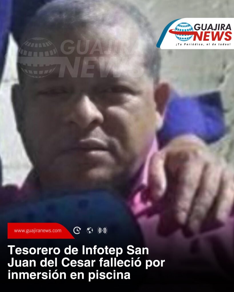 Un hombre identificado como Amancio Parra, quien se desempeñaba como tesorero del Instituto de Formación Técnica Profesional (Infotep) en San Juan del Cesar, falleció por inmersión mientras se bañaba en una piscina.