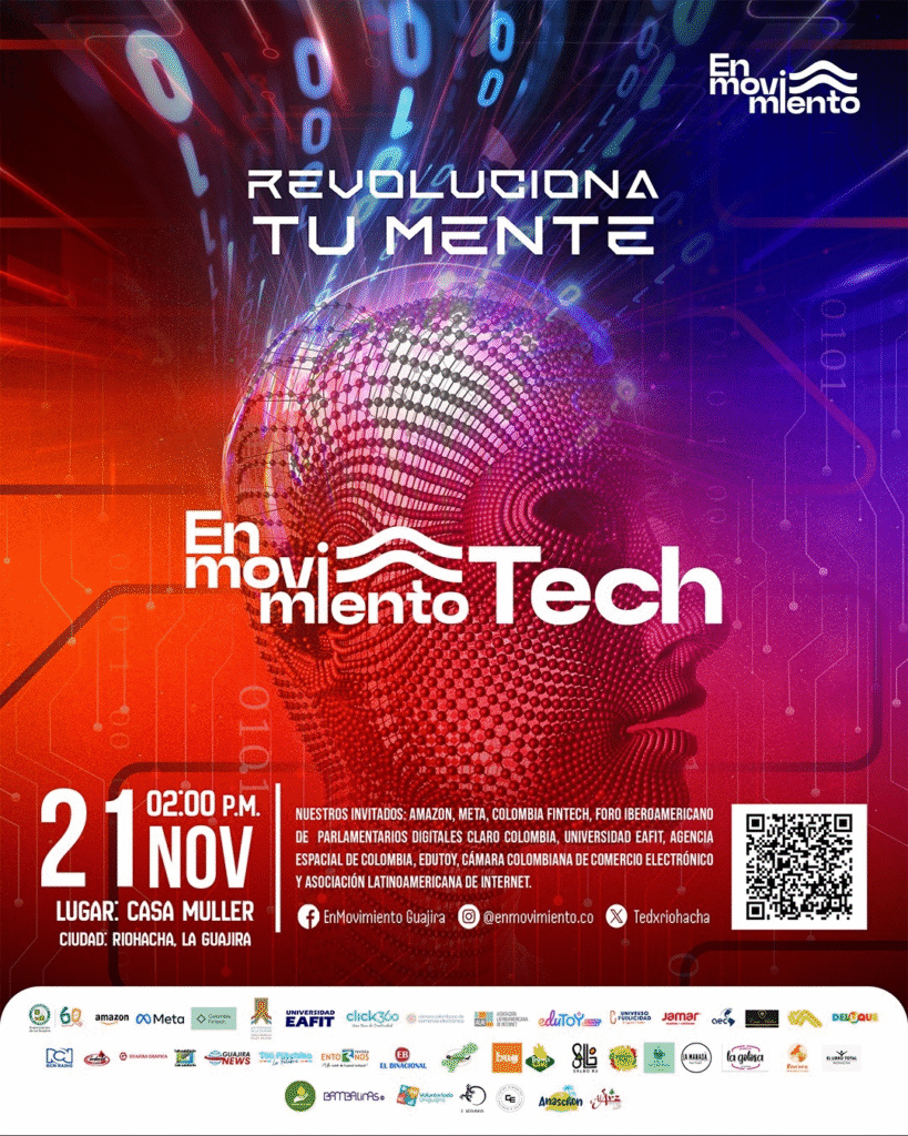 Este viernes 21 de noviembre La Guajira será sede de En Movimiento Tech 2025, uno de los encuentros tecnológicos más relevantes para el departamento, resultado del trabajo conjunto entre el colectivo de jóvenes guajiros creador de TEDx Riohacha y el senador de las TIC, Alfredo Deluque, presidente del Foro Iberoamericano de Parlamentarios Digitales.
