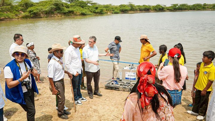 El alcalde Genaro Redondo acompañó al embajador de Israel Dali Dagan en la entrega oficial de un purificador de agua portátil en la comunidad El Pasito, a las afueras de Riohacha.