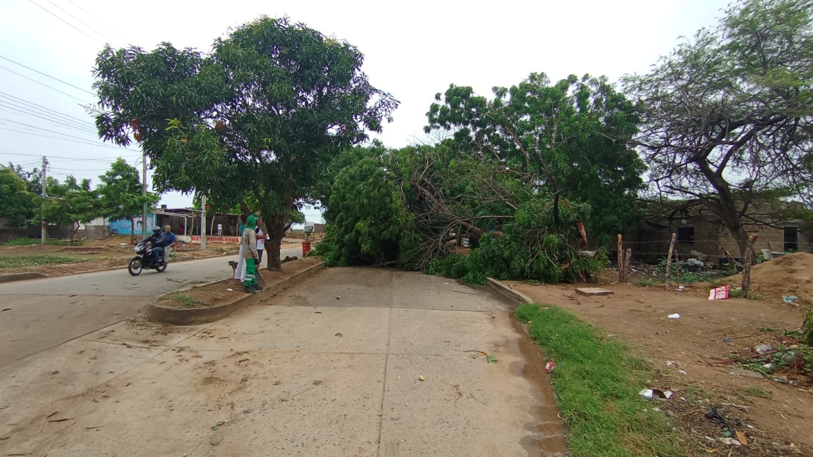 De igual manera, en la comuna diez de Riohacha, se produjo también la caída de un pesado árbol, el cual está obstaculizando la importante vía que comunica desde el sector de El Dividivi hacia la zona urbana de la capital de La Guajira.